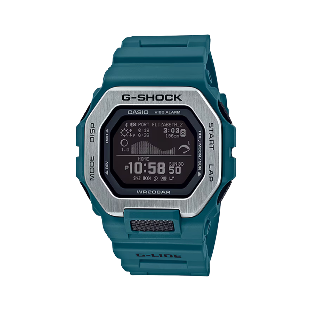 Um modelo G-LIDE que se conecta a smartphones da linha esportiva da G-SHOCK. Informações sobre a maré e horários do nascer e do pôr do sol para cerca de 3.300 locais em todo o mundo podem ser definidos facilmente usando o aplicativo dedicado. O LCD MIP de alta definição também melhora a visibilidade. Isso, combinado com as funções de medição de treino, é útil para os surfistas.Também proporciona conforto com uma pulseira de uretano macia com fendas que ajudam no ajuste e permitem que a água e o suor escapem.