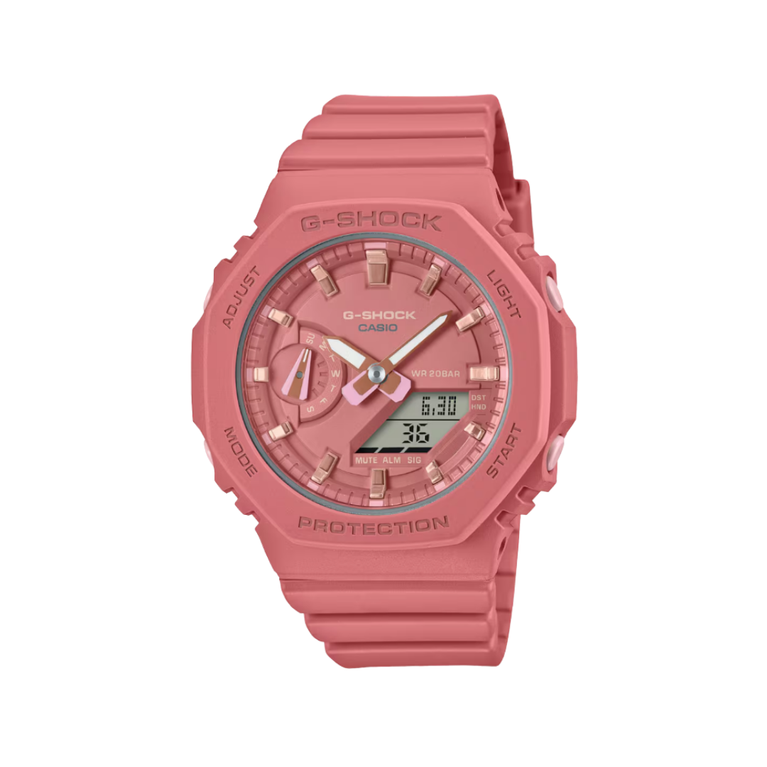 O relógio de pulso Casio G-Shock GMA-S2100-4A2 pertence a série que reduz o tamanho do GA-2100 para criar um design simples e fino.